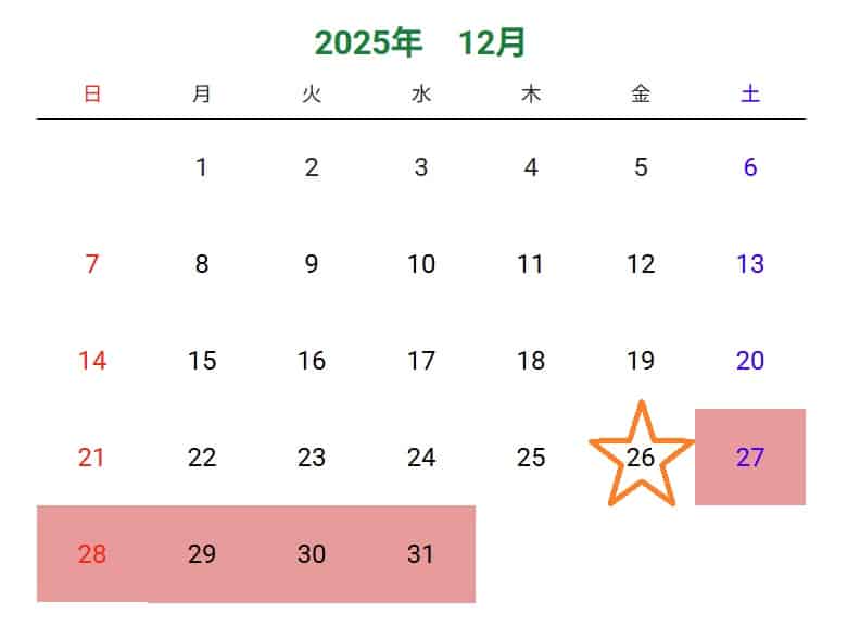 年末はいつまで?