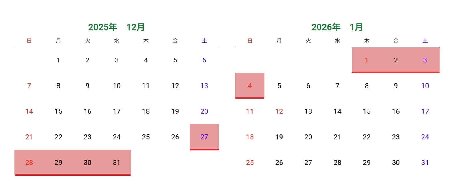 年始はいつから?